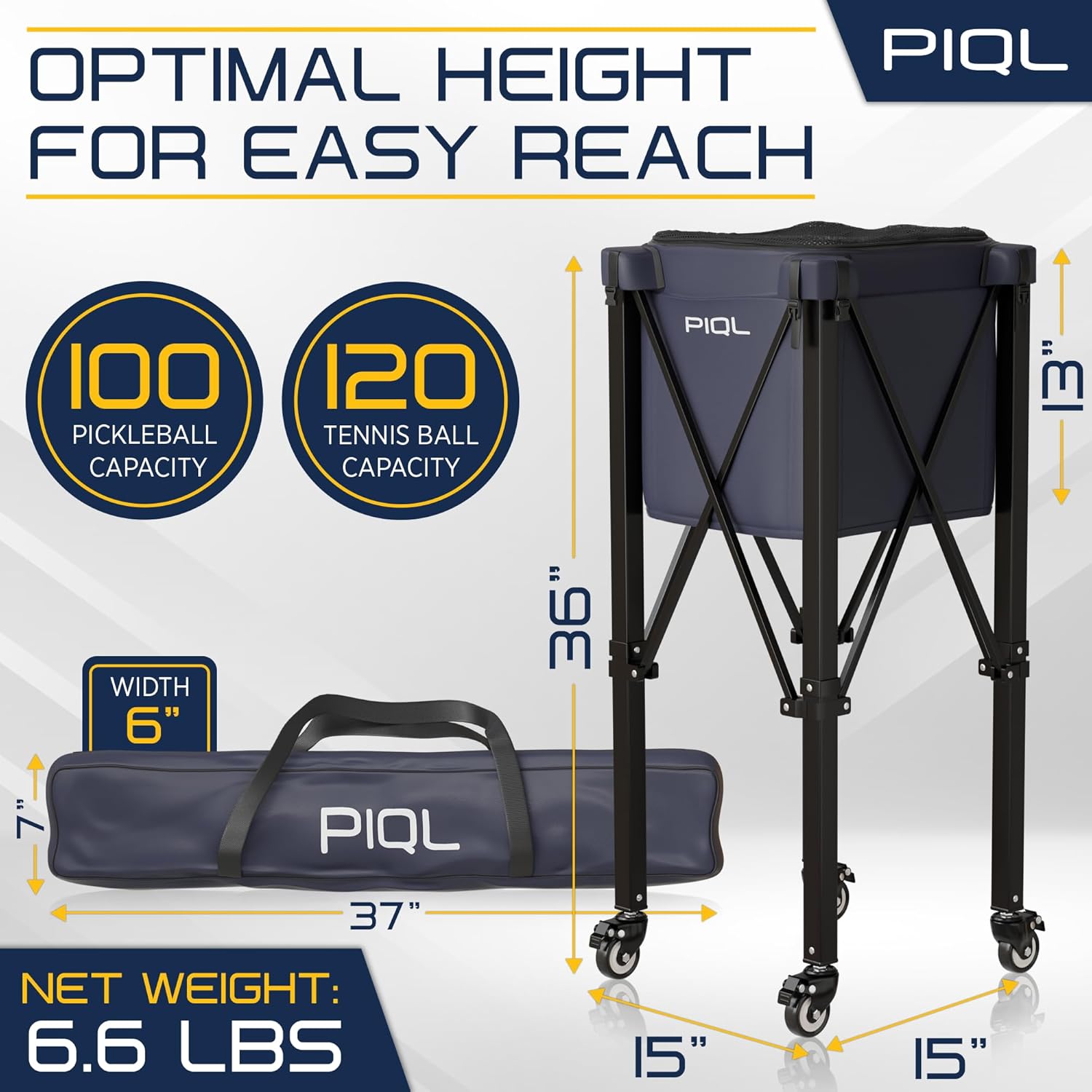 Elevate your experience on the court with the PIQL Ball Caddy — a game-changing companion that streamlines ball management and