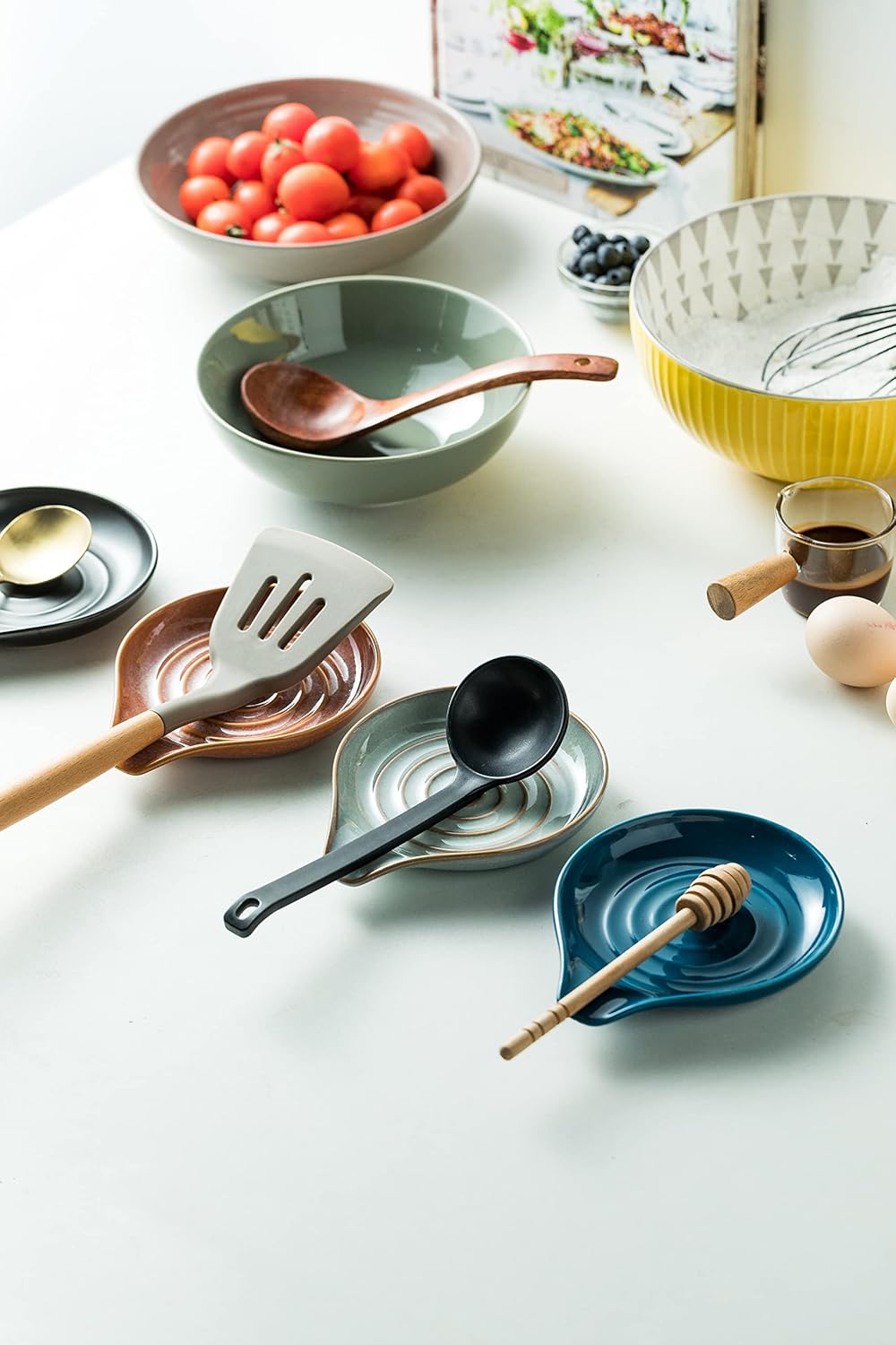 [Large Spoon Rest] This ceramic spoon holder measures 6.1 x 5 inches, matches most common cooking utensils of the usual size, and sits properly on your stovetop.