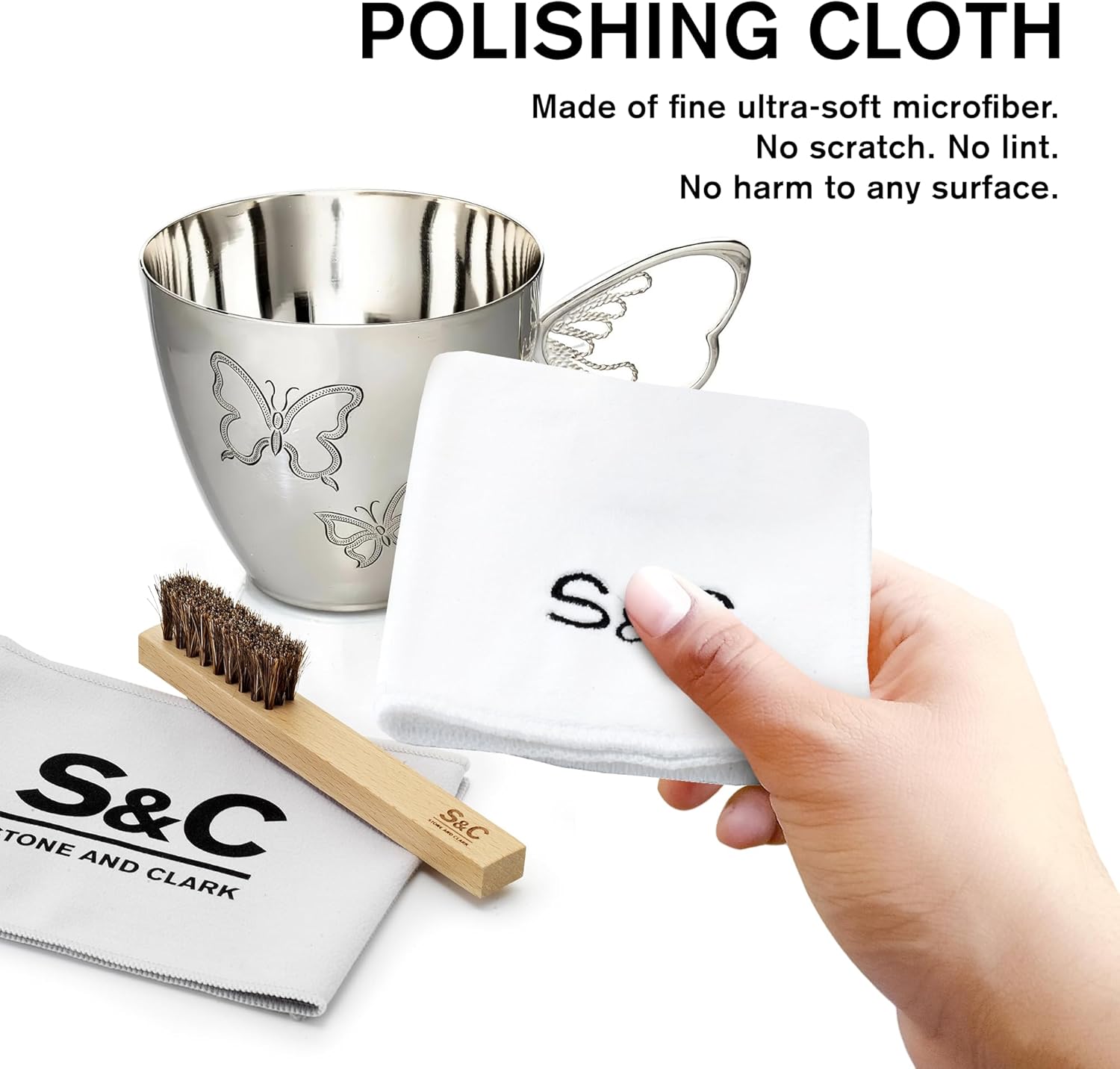 Polish Silverware – Use either brush for silverware or, as a handy horse hair jewelry brush. Keep silverware in pristine condition with the included microfiber towel and polish cloth for fine metals.